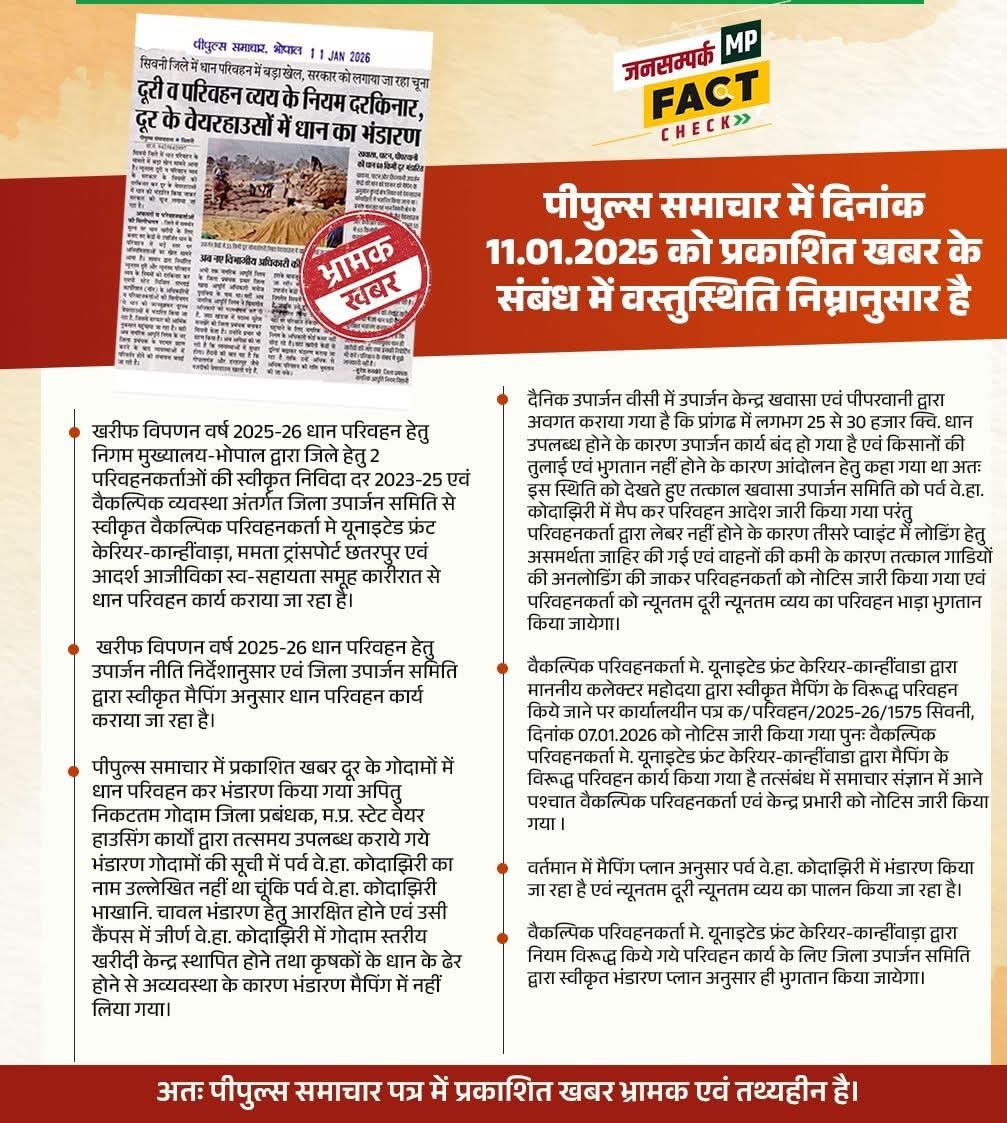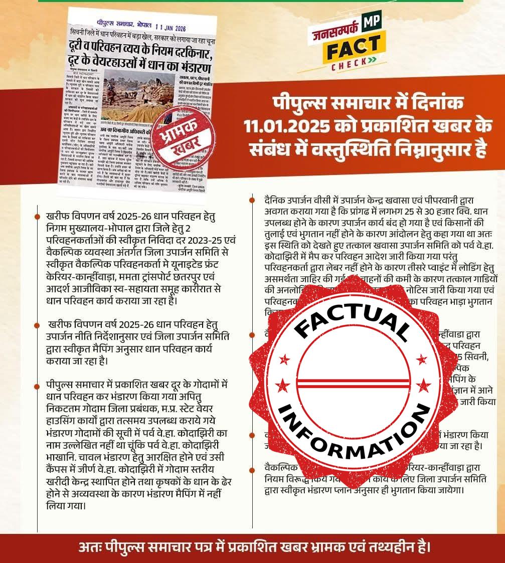 #DPRFactCheck: पीपुल्स समाचार में दिनांक 11.01.2025 को प्रकाशित खबर के संबंध में वस्तुस्थिति निम्नानुसार है।