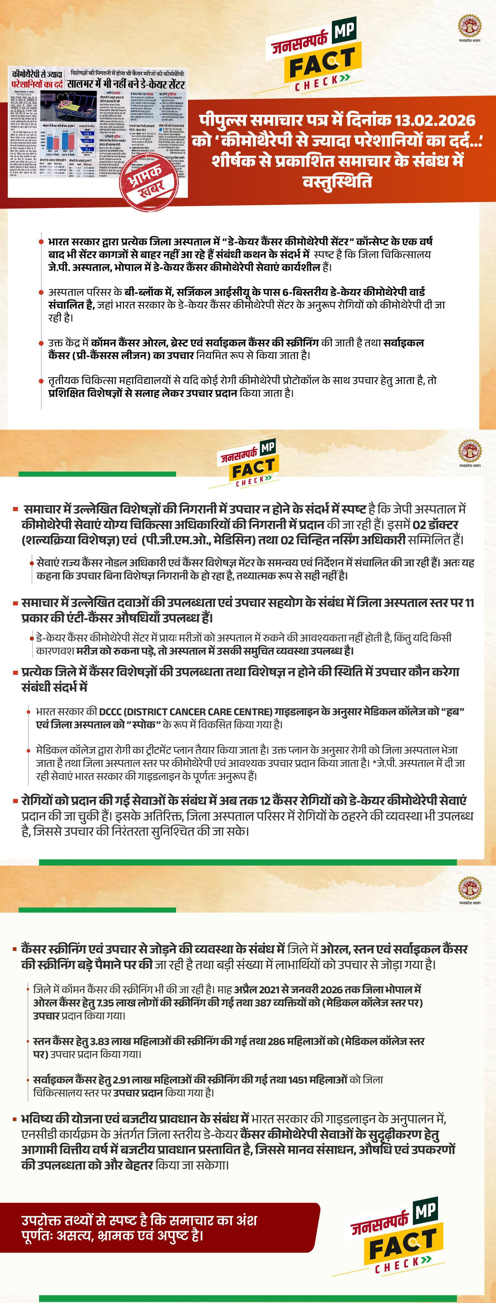 #DPRFactCheck: पीपुल्स समाचार पत्र में दिनांक 13.02.2026 को कीमोथैरेपी से ज्यादा परेशानियों का दर्द शीर्षक से प्रकाशित समाचार के संबंध में वस्तुस्थिति।