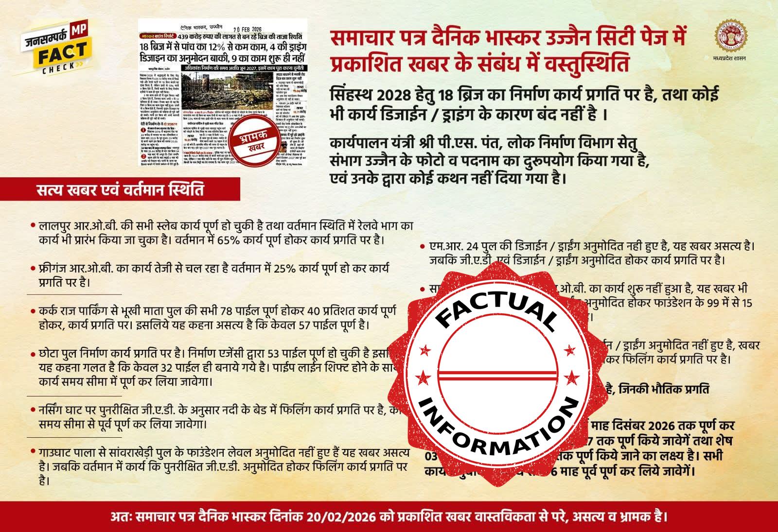 #DPRFactCheck: समाचार पत्र दैनिक भास्कर उज्जैन सिटी पेज में प्रकाशित खबर के संबंध में वस्तुस्थिति।
